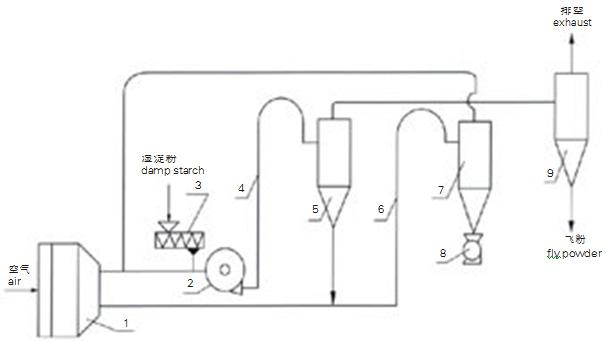基本型氣流干燥設(shè)備,適用于松散狀、粘性小、成品為顆粒及粉末的物料。此流程示意為負(fù)壓氣流干燥,用戶可根據(jù)產(chǎn)品特性選擇正壓型式的干燥方法。